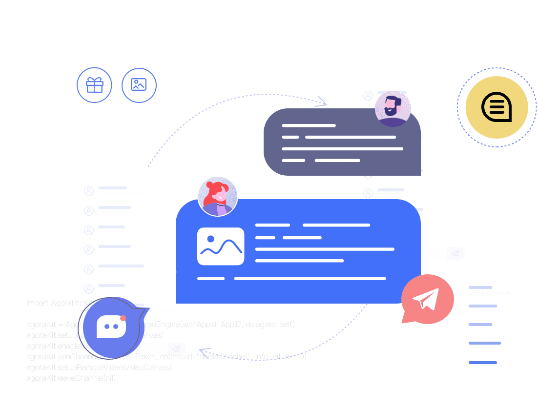 通過調用API,即刻擁有私聊、群聊、聊天室、 呼叫邀請等通訊能力